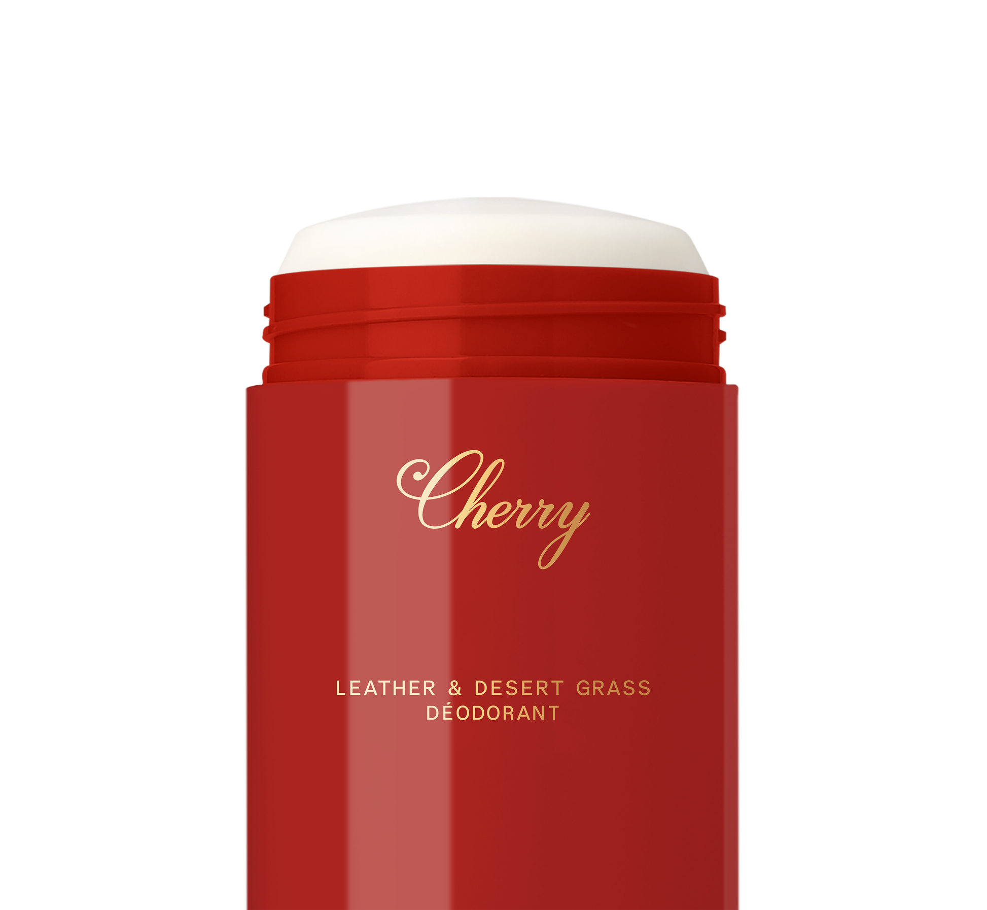 Aluminum-free deodorant formulated for 48-hour protection—in the smooth, rich Cherry collaboration scent, Leather & Desert Grass.